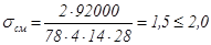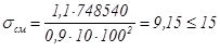 Вычислим напряжение смятия для шпонки под полумуфту.