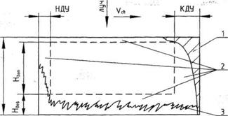 Используем контроль прямым и однократно отраженным лучом, который осуществляется перемещением пьезопреобразователь между точками 1 и 3 (рис. 2), что позволяет прозвучивать мертвую зону. Пьезопреобразователь перемещают по поверхности изделия от оси шва:
