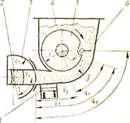 Рис. 3 Принципиальная схема тестоделительной машины с лопастным нагнетателем (жестко закрепленная лопасть) и делительной головкой: