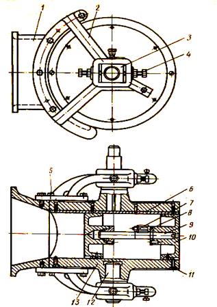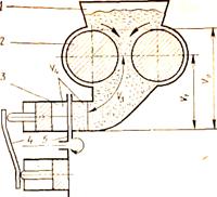 2. Тестоделительные машины с лопастным нагнетателем, выполненным в виде поворотной лопасти, жестко закрепленной на валу, и поворотной деятельной головкой (рис. 3). К ним относятся сравнительно новые машины