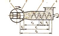 Рис. 10 Принципиальная схема тестоделительной машины со шнековым нагнетателем без делительной головки:
