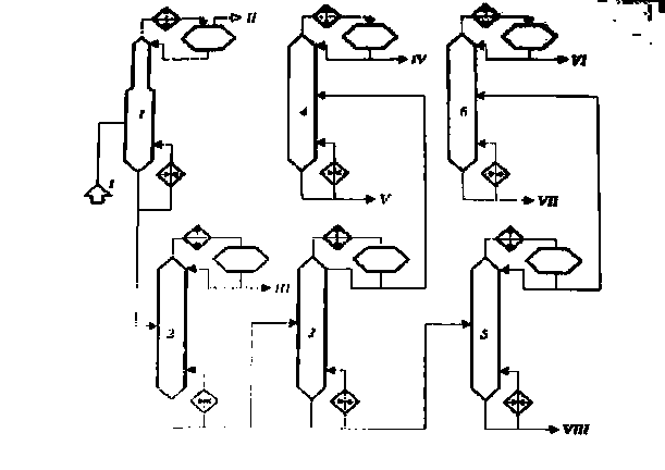 | Деэтанизатор (1) Пропановая (2) Бутановая (3) Изобутановая (4) Пентановая (5) Изопнтановая (6) |