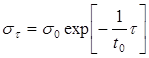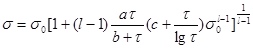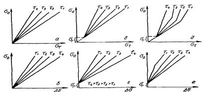1-типичная зависимость σ-τ; 2-возможная форма кривой для сплава со структурными превращениями (а — b — I период; b — с — II период; с — d — III период релаксации)