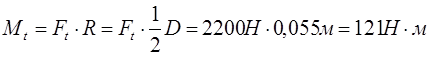 Ft = 2200 H Ft – окружная сила