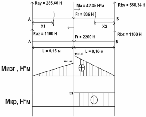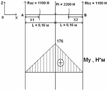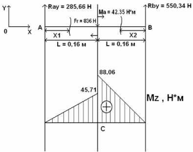 При X 2 = 0,16 м Mz 2 = 88,06 H ∙м