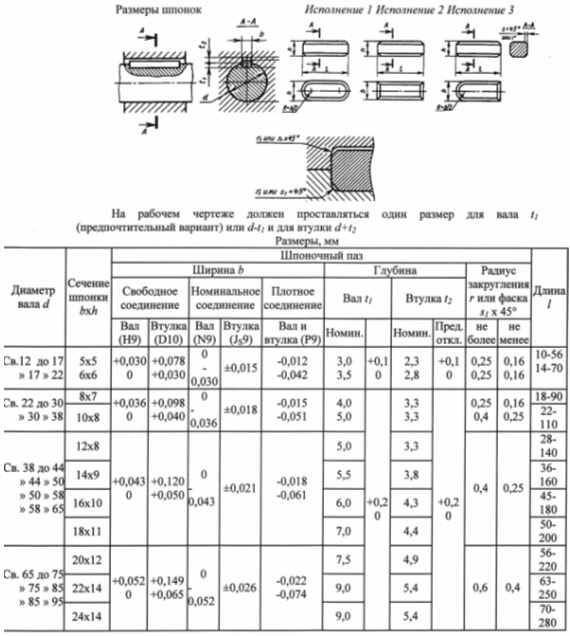 Размеры шпоночных пазов.