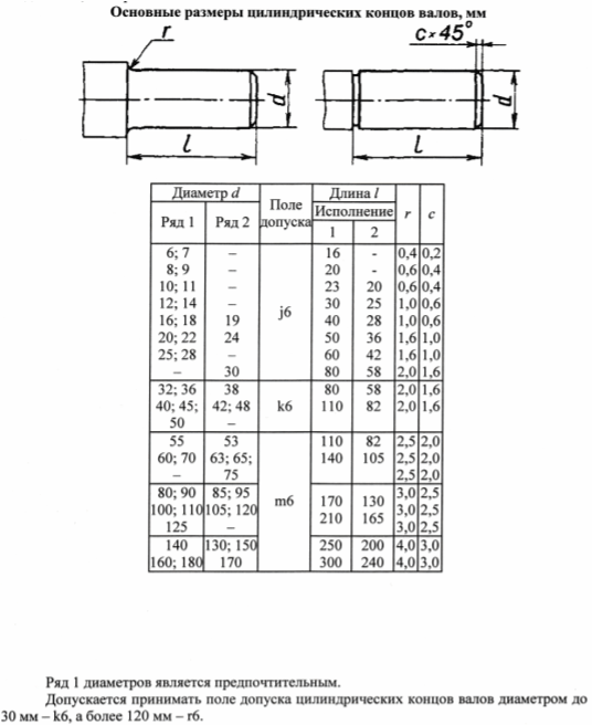 Цилиндрические концы валов предусматриваются в двух исполнениях: