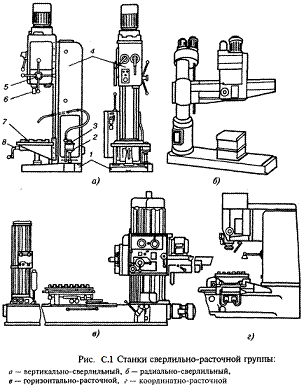 Свёрла бывают различных видов (рис. а-и) и изготовляются из быстрорежущих, легированных и углеродистых сталей, а также оснащаются пластинками из твёрдых сплавов.