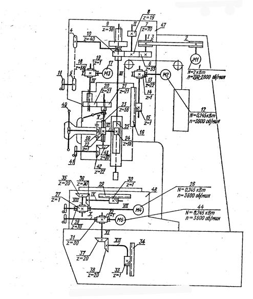 Рис. 2. Кинематическая схема станка мод. 2Д450