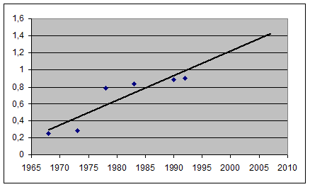 | 1973 | 31,2 | 8,8 | 0,28 | 35,76 |