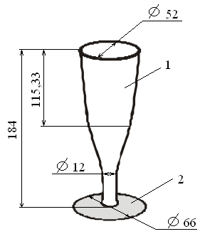 Фужер состоит из двух частей: верхней части (емкости) и ножки, с помощью которой фужер удерживается в вертикальном положении. Обе части фужера изготавливаются отдельно и совмещаются в процессе монтажа. Основные размеры фужера приводятся на рисунке 1.