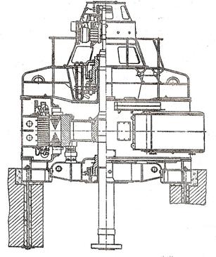никами в верхней и нижней крестовинах и с фланцевым концом вала для присоединения к насосу. Двигатель выполнен с подпятниками и направляющими подшипниками скользящего трения.