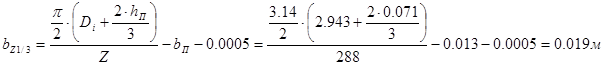 Ширина паза статора bп =0.013м