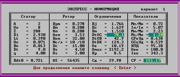 Как можно увидеть из Таблицы 2, программа не налагает штрафы на двигатель с данными параметрами, но перегрев демпферной обмотки необходимо поднять для более результативной работы.