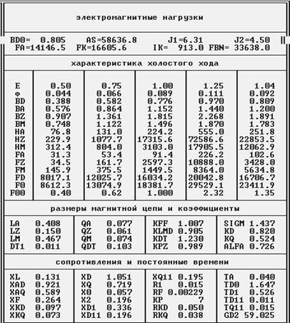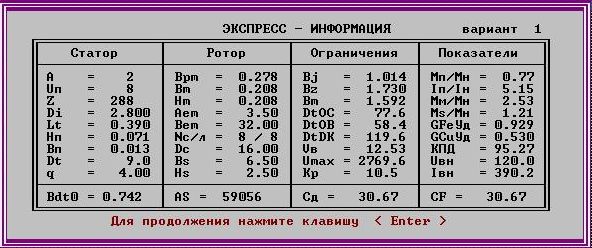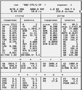 Полученный вариант двигателя отличается хорошо сбалансированным температурным режимом, наличием небольших запасов по показателям, средней ценой и КПД = 95.14, что характерно для машин этого класса мощности. Двигатель может нести нагрузки несколько превышающие номинальные, что позволяет говорить о высокой надежности и экономичности. В целом, для данных параметров, получился оптимальный двигатель, отвечающий необходимым технико - экономическим требованиям, что делает его конкурентоспособным и дает возможность его широкого использования в народном хозяйстве.