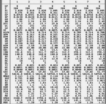 Оптимизация параметров двигателя производится с помощью программы поисковой оптимизации двигателя «OPTCD». В таблице 1 приведены результаты ручного расчета двигателя по исходным данным. В первых двух колонках приводятся исходные значения, другие две – рассчитанные значения основных показателей двигателя. При выполнении всех ограничений целевая функция CF должна быть равна приведенной стоимости двигателя CД .