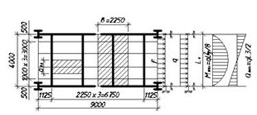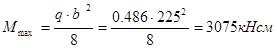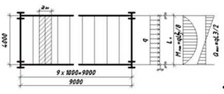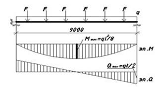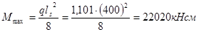 400 см, загруженной равномерно распределённой погонной нагрузкой, собираемой с грузовой площади шириной