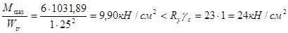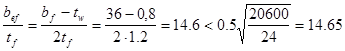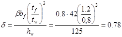 По ГОСТ 8239-89 принимаем I №30 с Jx =7080 см4 , Wx =472см3 , bf =13,5см, Pbn =36,5кг/м, twbn =0,65см