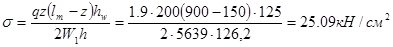 Принимая сварные швы Ш1 за опоры, препятствующие смещению траверсы под действием отпора бетона фундаментов в виде двухконсольной шарнирно опертой балки.