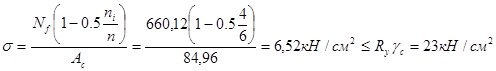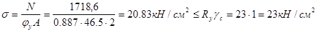 Размеры опорной плиты в плане определяем из условия прочности бетона, фундамента, работающего на смятие.
