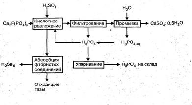 Ca5 (PO4 )3 F + 5H2 SO4 + nH3 PO4 + 5mH2 O = (n + 3)Н3 РО4 + 5CaSO4 · mH2 O + HF