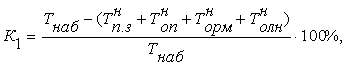 К- удельный вес исследуемой категории затрат рабочего времени в общих затратах за время наблюдения (коэффициент загруженности). Определяется на основании данных наблюдений, которые проводились ранее;