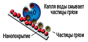 Рис. 4. Принцип действия самоочищающихся нанопокрытий.