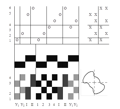 Схема заправного рисунку тканини з позначенням елементів зображена на рис.1