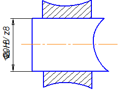 Рисунок 1.2 – Эскизы соединения и его деталей: а - вал, б - отверстие,