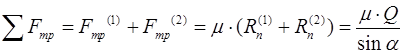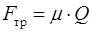 где Q – нагрузка на каретку,( поперечная сила), Н;µ – коэффициент трения.