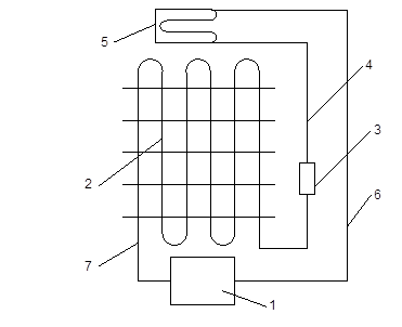 4 – испаритель; 5 – терморегулятор; 6 – шкаф; 7 – герметичный компрессор.