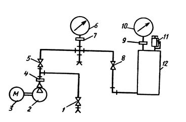 5, 9 - вентили; 6 -манометр; 7 - быстросъемная муфта; 8 - холодильный агрегат; 10 – клапан;