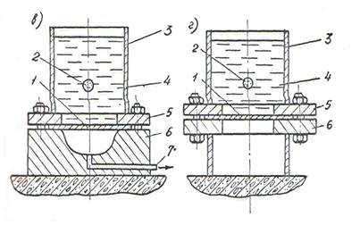Для изготовления небольших партий деталей часто вместо стационарного бассейна используют разовые емкости с водой, разрушаемые при взрыве (рис. 1-в). Такую емкость, изготовленную из картона или тонколистового металла, устанавливают непосредственно на матрицу и заполняют водой, в которой и осуществляют взрыв заряда ВВ.
