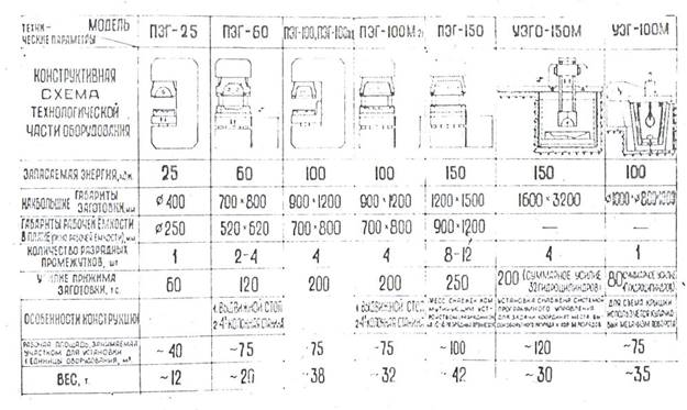 При изготовлении деталей из листовых материалов получили распространение прессы для электрогидравлической штамповки, разработанные НИАТ [53]. На рисунке 8 представлены прессы и установки различной мощности, наиболее широко используемые в авиационной промышленности.