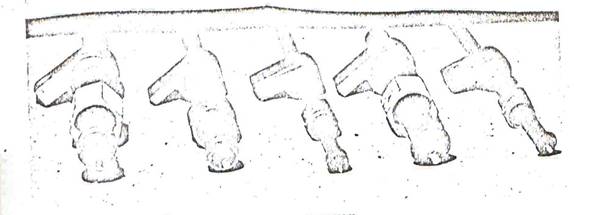 Рис. 22. Схема получения 4-х деталей типа «патрубок» за один удар на молоте взрывного действия.