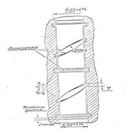 При штамповке детали «патрубок» за 1 удар снаряда-бойка получаются 4 готовые детали из одной цилиндрической заготовки (рис. 22). Матрица изготовлена таким образом, что при ударе снаряда-бойка вода, используемая в качестве передающей среды, формует заготовку по углублениям в матрице диаметром 85 мм, образовывая отбортовки и просекая по острым выступам; она одновременно просекает заготовку и по углам канавок глубиной 5 мм, выполненных по радиусу 304 мм. Получаются 4 готовые детали, у которых необходимо притупить лишь острые кромки.