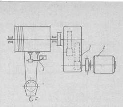 где: 1-двухступенчатый редуктор, 2-электродвигатель, 3-ограничитель подъема.