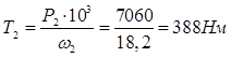 ω2 =πn2 /30=π*174/30=18,2 рад/с;