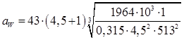 Высота центров редуктора Но =(1…1,12)аw =250мм.
