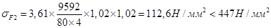 [σсм ] =2…4МПа - допустимое напряжение на смятие для резины.