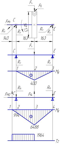 где Т3 момент на тихоходном валу редуктора, Т3 =1964Нм;