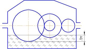 Используем картерную систему смазывания. В корпус редуктора заливаем масло так, чтобы венец зубчатого колеса был в него погружен на глубину hм (рис.15):