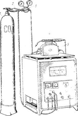 Для сварки пользуются специально выпускаемой сварочной углекислотой; можно пользоваться также пищевой углекислотой.