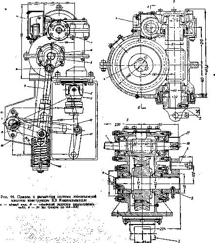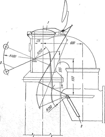 Рис.3. Привід і важільна система люкознімальної машини.