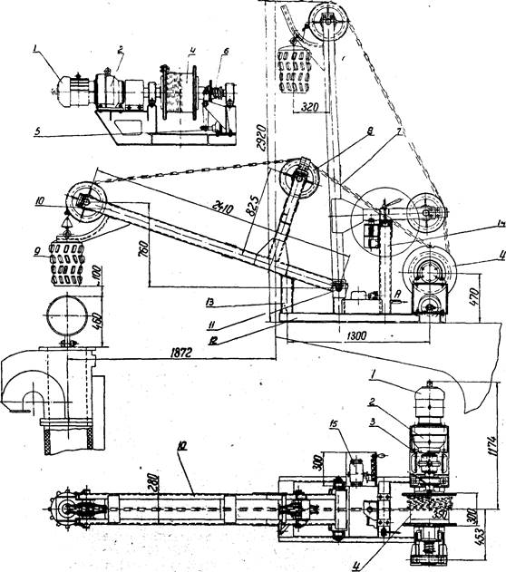 Рис.5. Загальний вид механізму відкривання-закривання затворів вугільної вежа конструкція КБ Коксохіммаша
