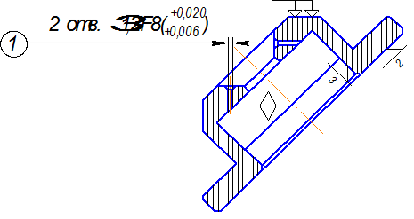 Выполнение двух смазочных отверстий расположенных под углом 45° к оси детали заставляет спроектировать специальное установочное приспособление обеспечивающее базирование детали с погрешностью установки ±5’, эти отверстия высокоточные с допуском F8.