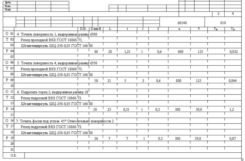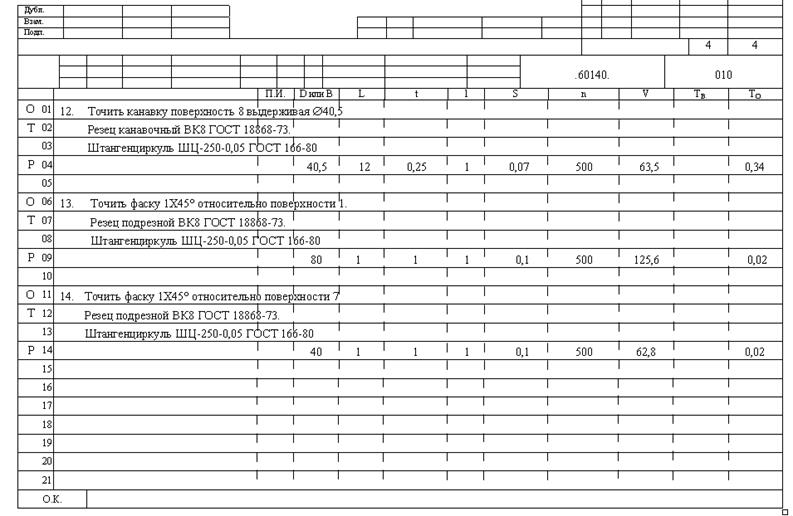 | О | 01 | 8. Точить фаску под углом 45° относительно поверх. 1 | ||||||||||||||||||||||||||||||||||
