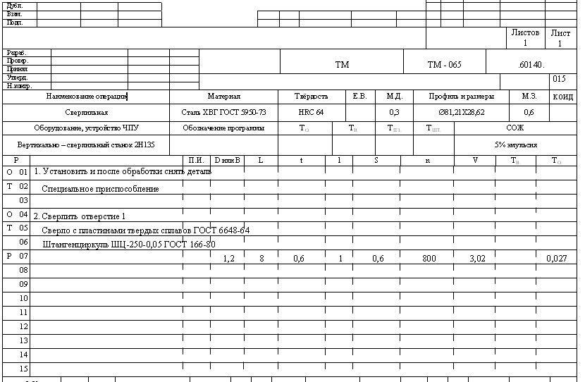 | О | 06 | 9. Сверлить отверстие Æ13 поверхность 6 | ||||||||||||||||||||||||||||||||||