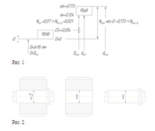 Построим схему расположения полей допусков (рис. 1) и эскизы сопрягаемых деталей (рис. 2).