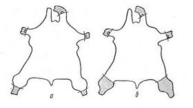 Одной из причин образования большого количества отходов является то, что на кожевенные и меховые предприятия поступает сырье со сложным извилистым контуром, длинными лапами, хвостами, лобашами, прирезями мяса и жира, а также с различными толщинами дермы по топографическим участкам.